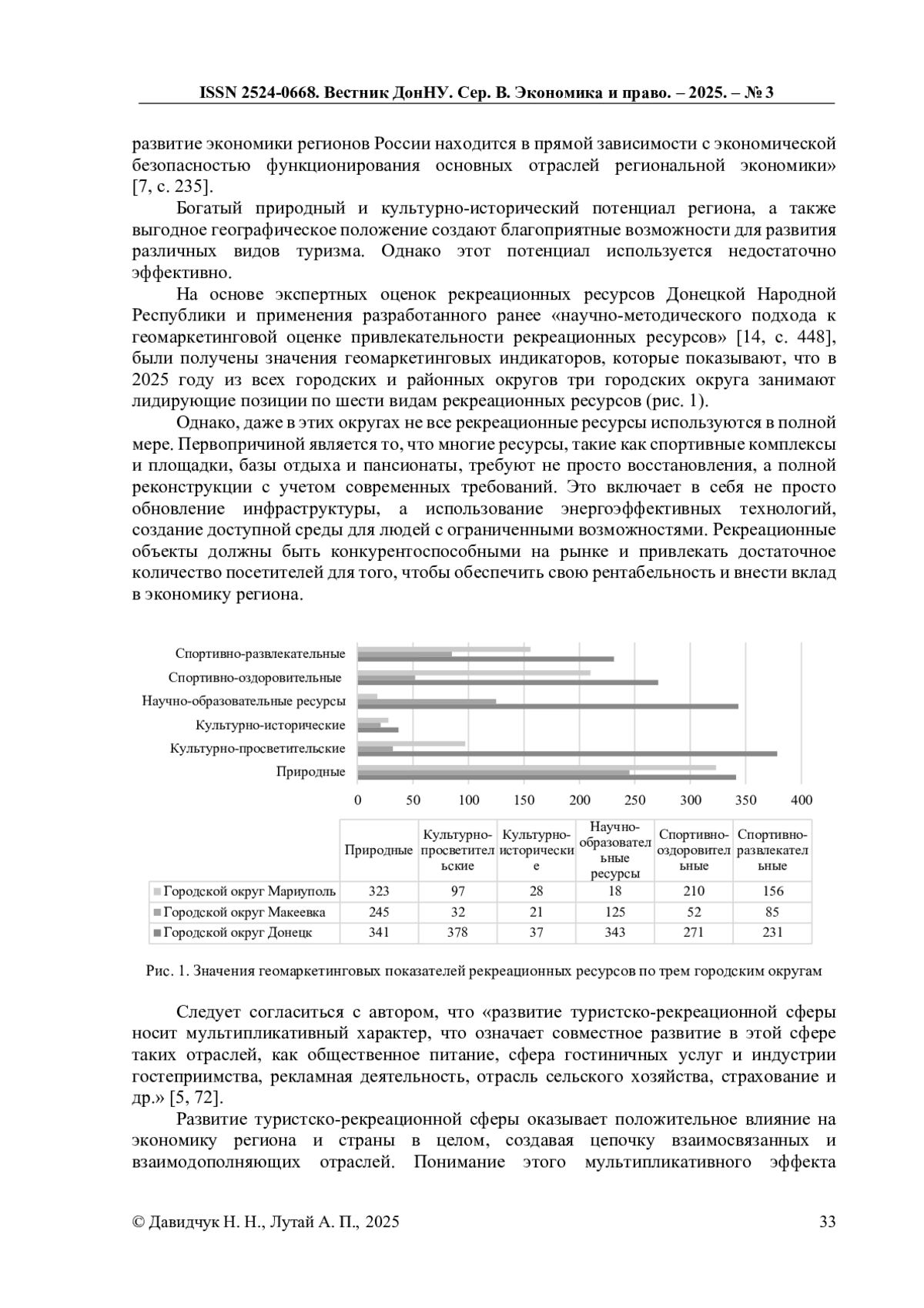 14. Давидчук, Н. Н. Определение рейтингов рекреационной привлекательности районов г. Донецка на основе геомаркетинговой системы / Н. Н. Давидчук // ЦИТИСЭ. - 2019. - № 4(21). - С. 437-450. DOI: 10.15350/24097616.2019.4.41 EDN: OBUEWN