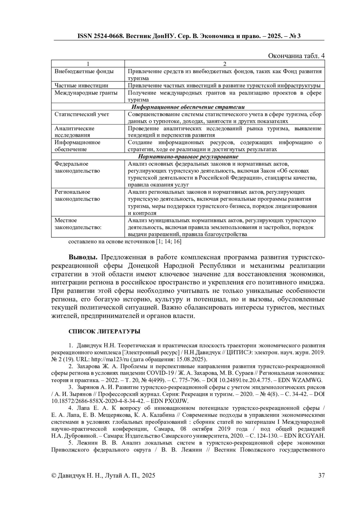 13. Сфера рекреационных и туристических услуг как приоритетное направление экономической стратегии регионов России / Н. В. Валуйсков, Л. В. Бондаренко, А. С. Родионов, В. Б. Соловьев // Вестник Алтайской академии экономики и права. - 2020. - № 7-2. - С. 5-10. DOI: 10.17513/vaael.1232 EDN: WVGARY