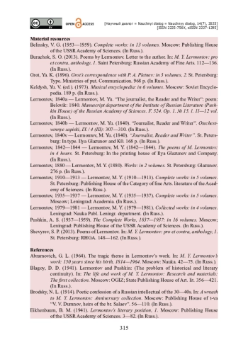 17. Шувалов С. В. Влияния на творчество Лермонтова русской и европейской поэзии / С. В. Шувалов // Венок М. Ю. Лермонтову : Юбилейный сборник. - Москва : Изд. т-ва “В. В. Думнов, наследники бр. Салаевых”, 1914. - С. 290-342.