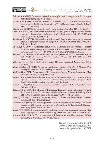 20. Юхнова И. С. М. Ю. Лермонтов и А. П. Сумароков : возможные сближения / И. С. Юхнова // Палимпсест. Литературоведческий журнал. - 2019. - № 1. - С. 43-57.