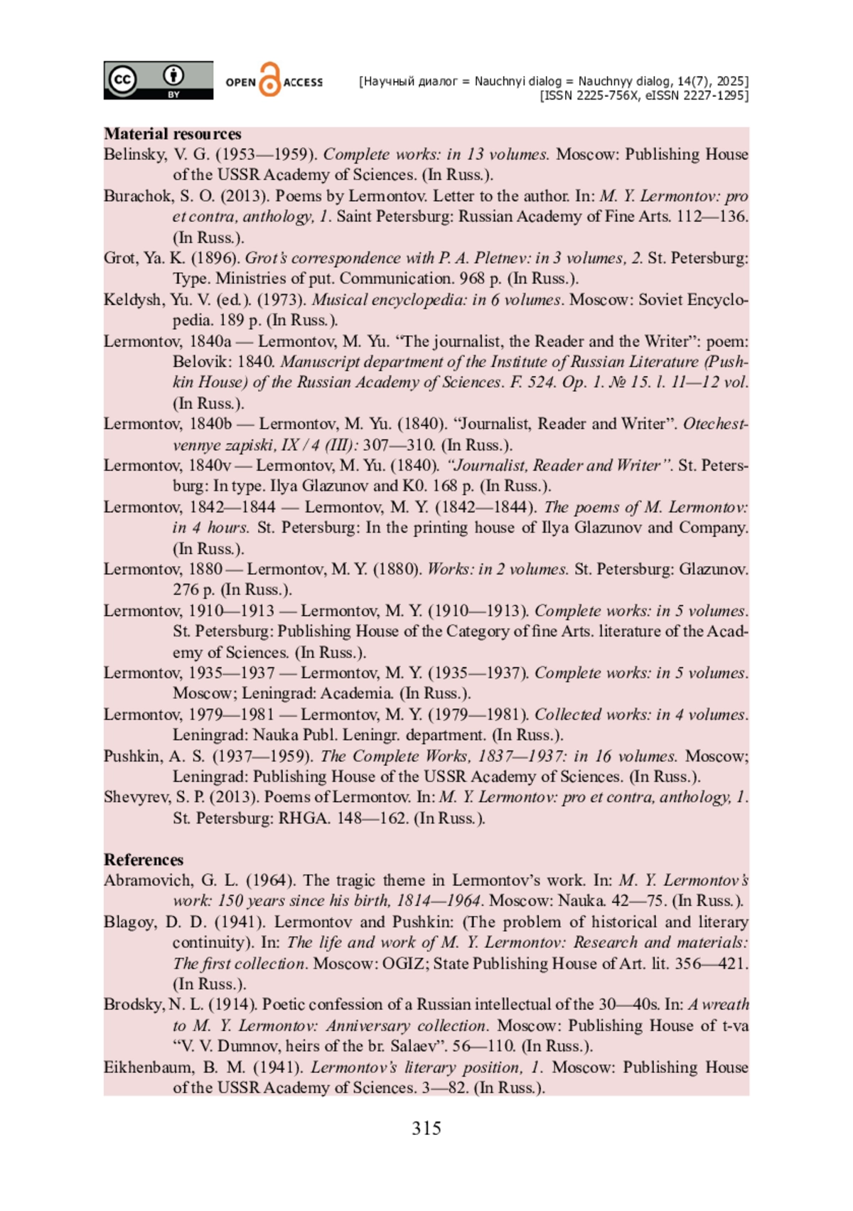 4. Вацуро В. Э. Журналист, читатель и писатель / В. Э. Вацуро // Лермонтовская энциклопедия. - Москва : Сов. Энцикл., 1981. - С. 170-172.