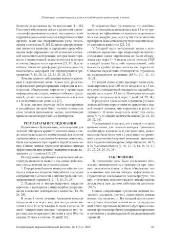 16. Hartley A. N., Marr H. S., Birkenheuer A. J. Cytauxzoon felis cytochrome b gene mutation associated with atovaquone and azithromycin treatment // J Vet Intern Med. - 2020. - № 6. - P. 2432-2437.