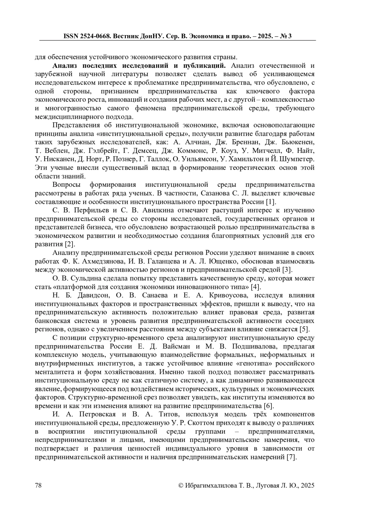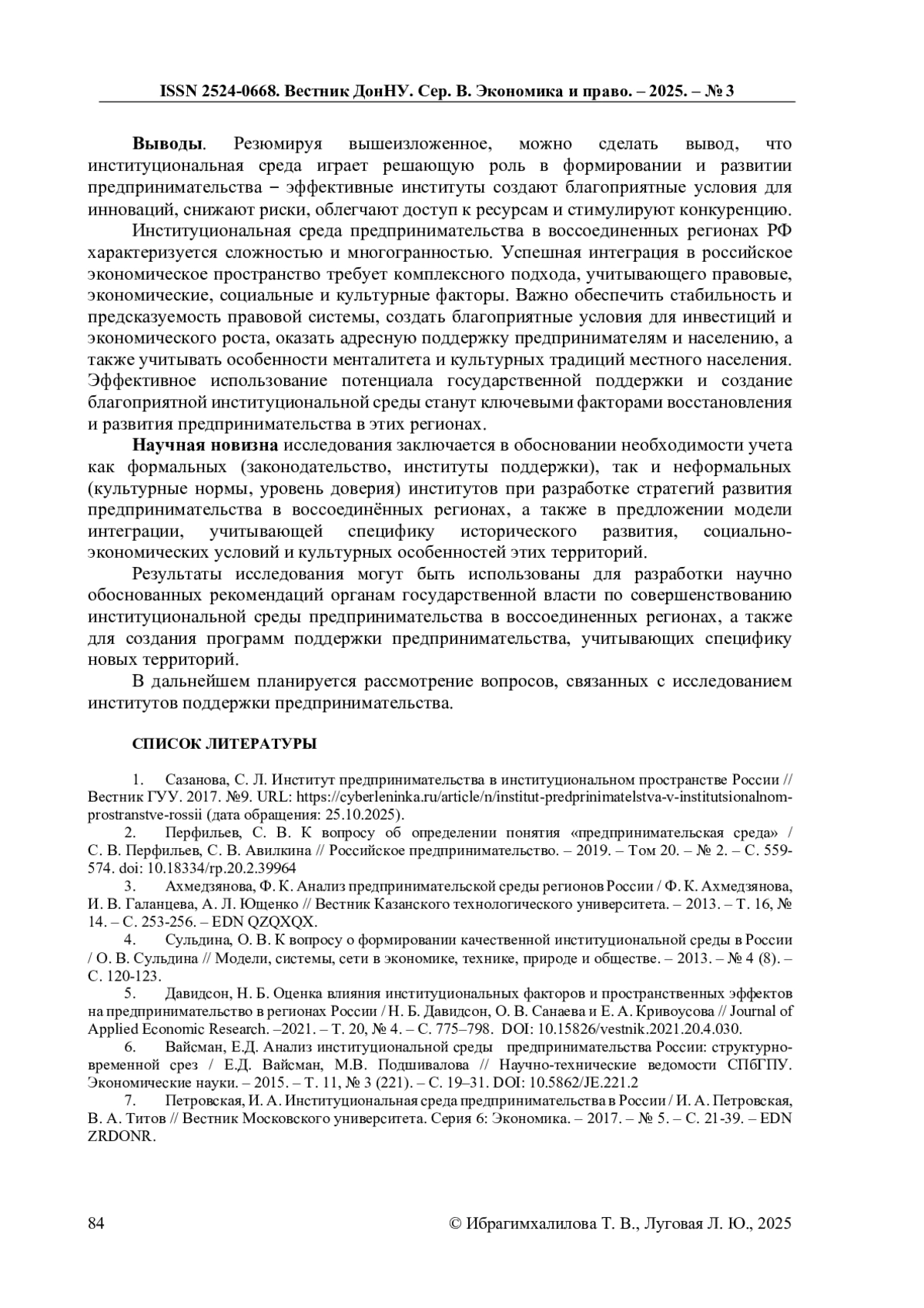1. Сазанова, С. Л. Институт предпринимательства в институциональном пространстве России // Вестник ГУУ. 2017. №9. URL: https://cyberleninka.ru/article/n/institut-predprinimatelstva-v-institutsionalnom-prostranstve-rossii (дата обращения: 25.10.2025).