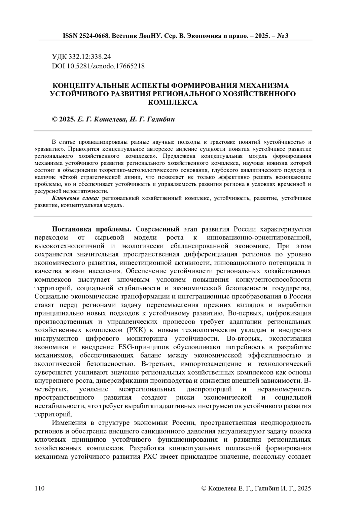 9. Сумина, Е. В. Социальные и инновационные приоритеты модели устойчивого развития региона / Е. В. Сумина, А. А. Бадюков // Вопросы инновационной экономики. - 2024. - Т. 14, № 2. - С. 583-602. EDN: BLJSUZ