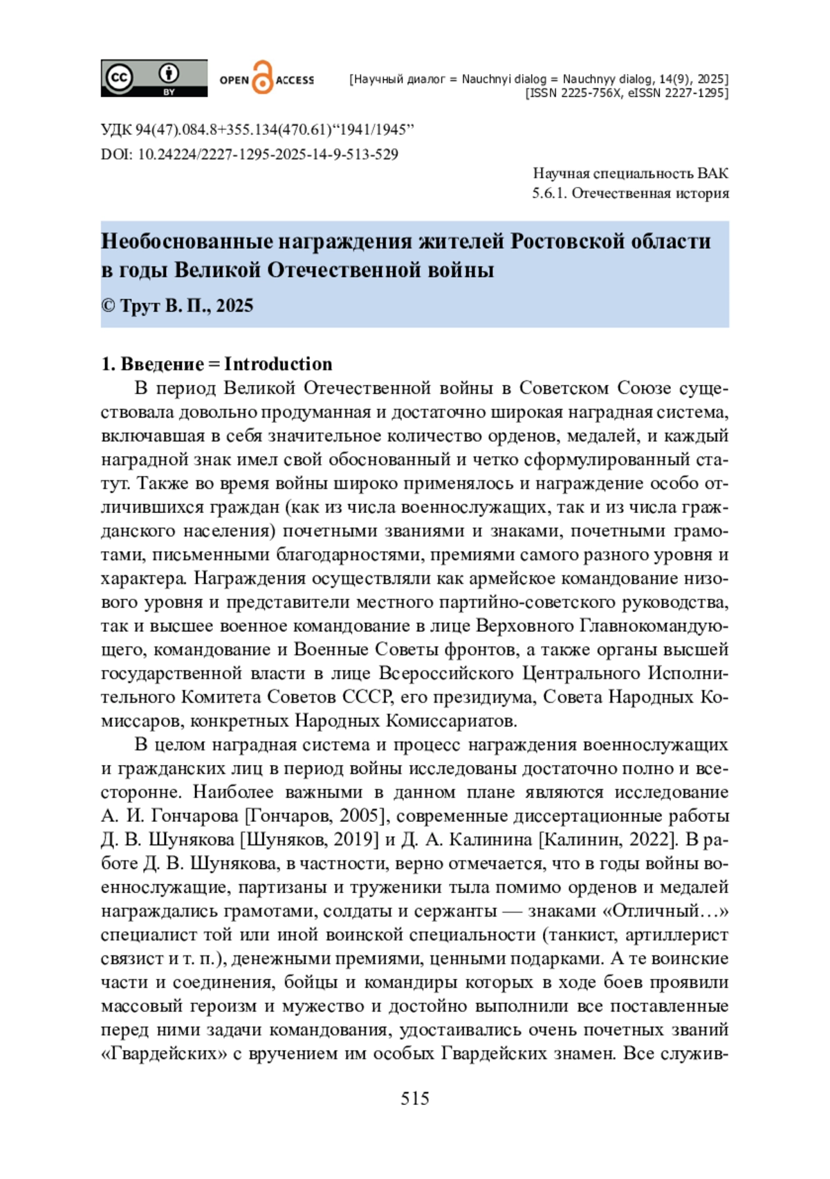 13. Калинин Д. А. Советская наградная система как социально-политическое явление : диссертация … кандидата исторических наук : 5.6.1 / Д. А. Калинин. - Мытищи, 2022. - 247 с.