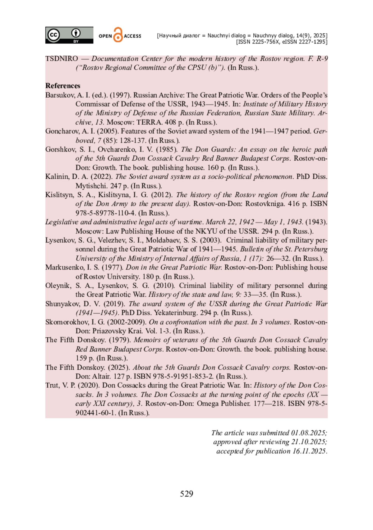 Вопросы необоснованного награждения во время войны военнослужащих и гражданских лиц из числа жителей Ростовской области командованием отдельных частей и соединений, в частности известного 5-го Гвардейского Донского казачьего кавалерийского корпуса, в историографии вплоть до настоящего времени не только не рассматривались, но, к сожалению, даже не ставились.