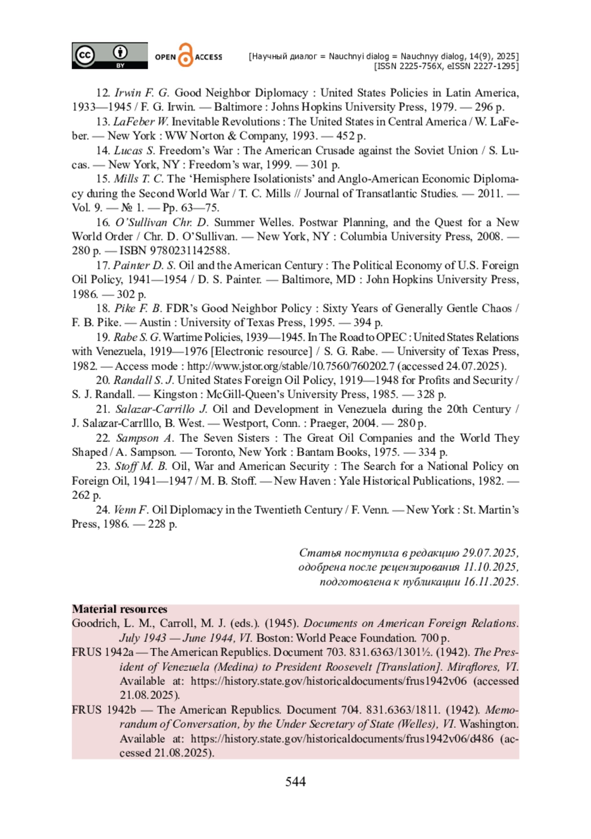 25. Rabe S. G. Wartime Policies, 1939-1945. In The Road to OPEC : United States Relations with Venezuela, 1919-1976 [Electronic resource] / S. G. Rabe. - University of Texas Press, 1982. - Access mode : http://www.jstor.org/stable/10.7560/760202.7 (accessed 24.07.2025).