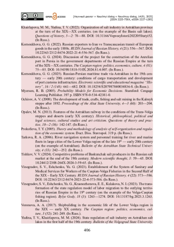 10. Виноградов С. В. Становление системы санитарно-медицинского обслуживания рабочих Каспийско-Волжских рыбных промыслов во второй половине XIX - начале XX в. / С. В. Виноградов, Ю. Г. Ещенко // Вестник Российского университета дружбы народов. Серия : История России. - 2023. - № 4 (22). - С. 573-586. - https://doi.org/10.22363/2312-8674-2023-22-4-573-586.