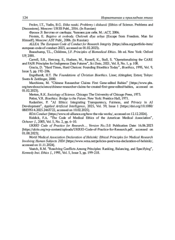 12. Сокольчик В.Н., Разуванов А.И. Этические принципы использования ИИ в исследовательской практике (на примере биомедицинских исследований) // Вестник Нац. акад. навук Беларусi. Сер. гуманiтар. навук. 2024. Т. 69. № 2. С. 95-107.