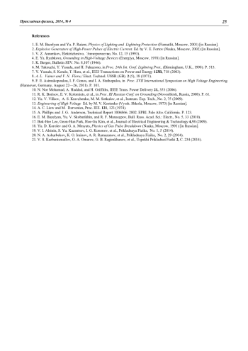 9. Asimakopoulou F. E., Gonos I. F., Stathopulos I. A. // XVII International Symposium on High Voltage Engineering, Hannover, Germany, August 22—26, 2011. P. 101.