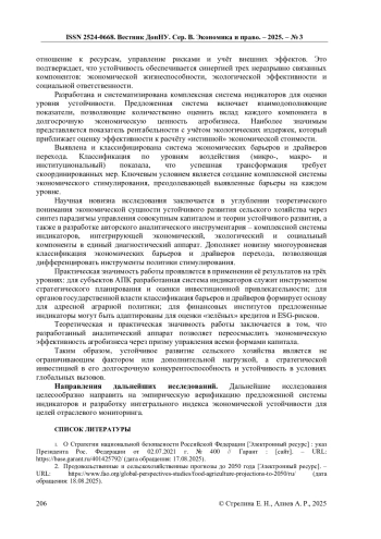 11. Стрелина Е.Н. Анализ тенденций развития инвестиционно-инновационной деятельности предприятий сельского хозяйства Краснодарского края и Ростовской области / Е. Н. Стрелина, Н. Д. Талах // Вестник Донецкого национального университета. Серия В. Экономика и право. - 2024. - № 112. - С. 80-88. -. DOI: 10.5281/zenodo.14236631 EDN: TXYQRL