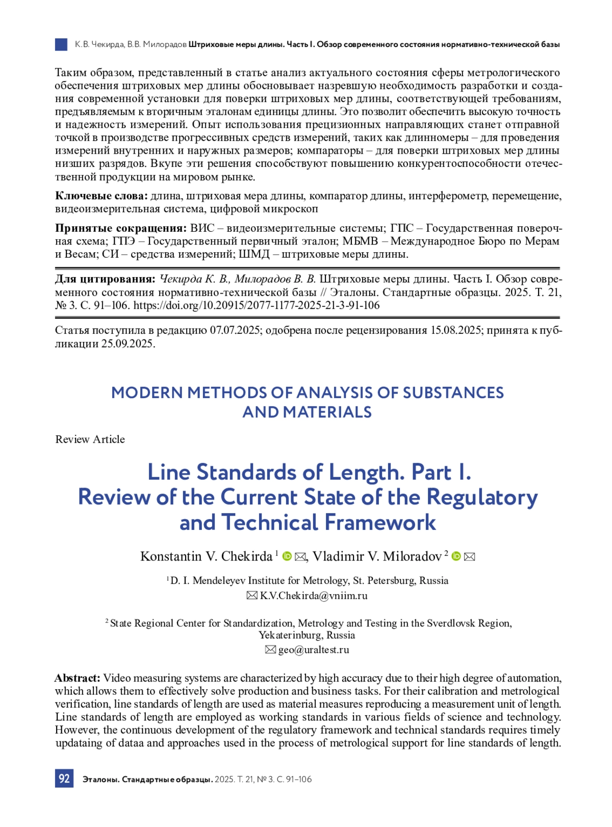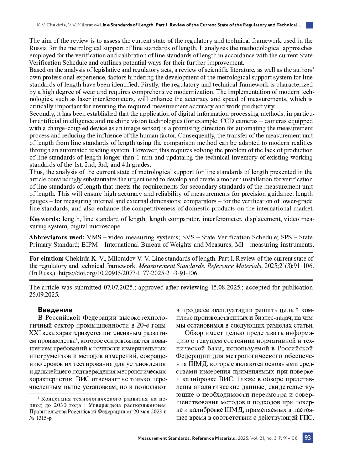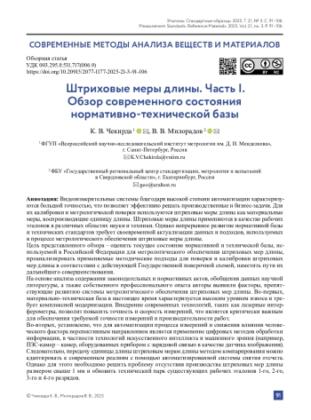 Цель представленного обзора – оценить текущее состояние нормативной и технической базы, используемой в Российской Федерации для метрологического обеспечения штриховых мер длины, проанализировать применяемые методические подходы для поверки и калибровки штриховых мер длины в соответствии с действующей Государственной поверочной схемой, наметить пути их дальнейшего совершенствования.