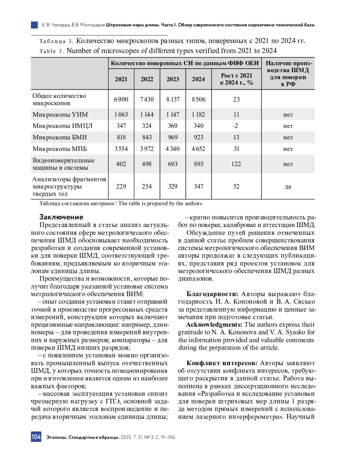 Таким образом, представленный в статье анализ актуального состояния сферы метрологического обеспечения штриховых мер длины обосновывает назревшую необходимость разработки и создания современной установки для поверки штриховых мер длины, соответствующей требованиям, предъявляемым к вторичным эталонам единицы длины. Это позволит обеспечить высокую точность и надежность измерений. Опыт использования прецизионных направляющих станет отправной точкой в производстве прогрессивных средств измерений, таких как длинномеры – для проведения измерений внутренних и наружных размеров; компараторы – для поверки штриховых мер длины низших разрядов. Вкупе эти решения способствуют повышению конкурентоспособности отечественной продукции на мировом рынке.
