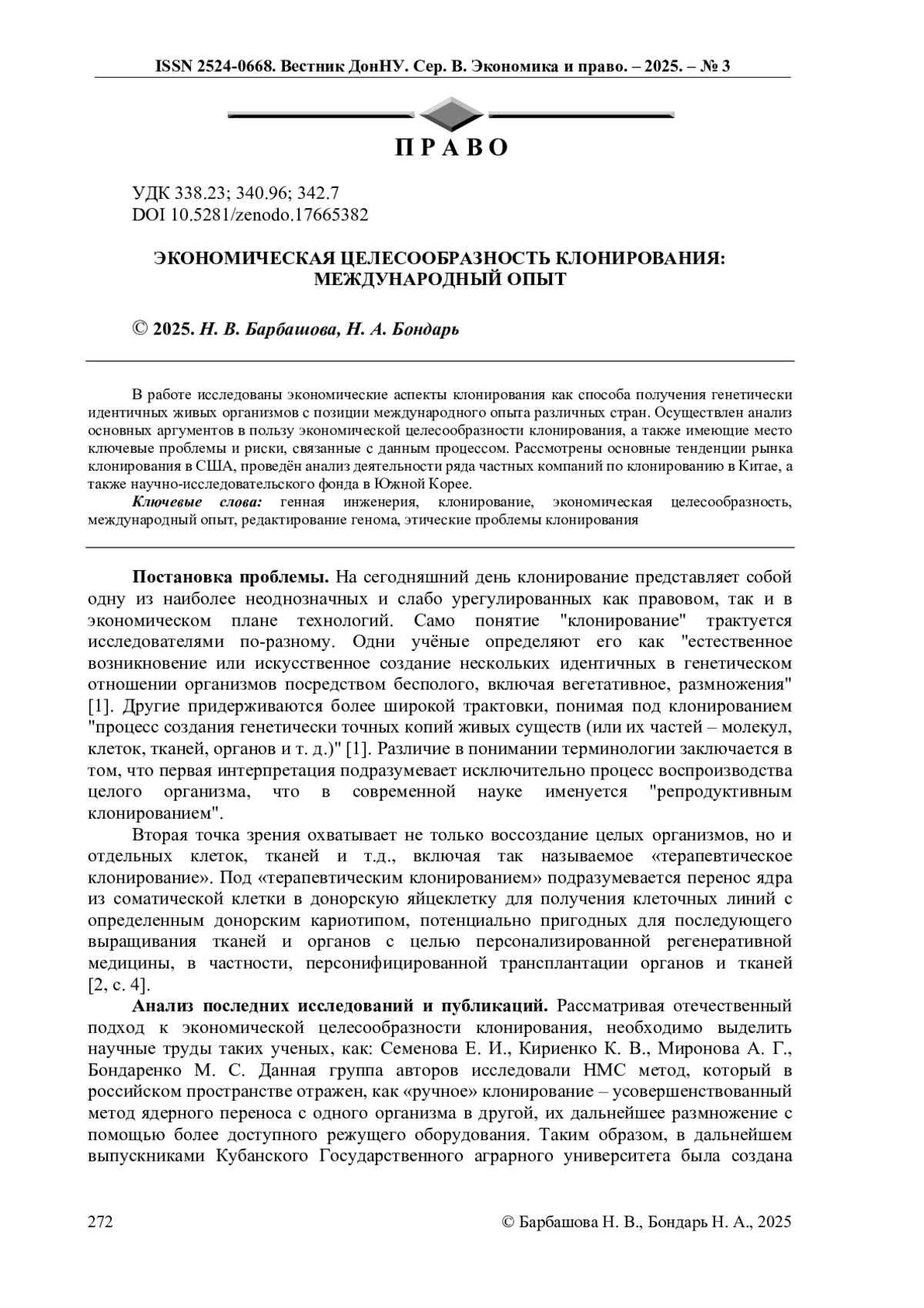 3. Семенова Е.И. Клонирование КРС технологией НМС: преимущества метода, достижения / Е.И. Семенова, К.В. Кириенко, А.Г. Миронова, П.Г. Икономов, В.П. Апрышко, М.С. Бондаренко, Д.С. Гришин, М.С. Заводовская, В.Ф. Мартын, О.В. Васильева, Н.С. Шокирова, С.А. Яковенко // Эффективное животноводство. - 2025. - С. 12-13. EDN: ZDMJBD