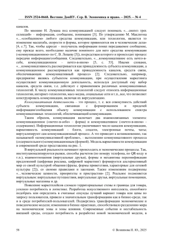 Динамичность и высокая технологическая насыщенность современной нестабильной внешней среды оказывает влияние на все сферы человеческой жизни. Практически беспрепятственное движение информации ускоряет не только хозяйственные процессы, но и влияет на поведение и психику потребителей – участников сложных коммуникаций.