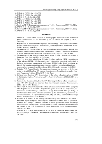 1. Алмаев Р. З. Советское школьное образование в историографических дискуссиях постсоветского периода // Преподаватель XXI век. 2022. № 2, ч. 2. С. 279-287. EDN: HXEBOU