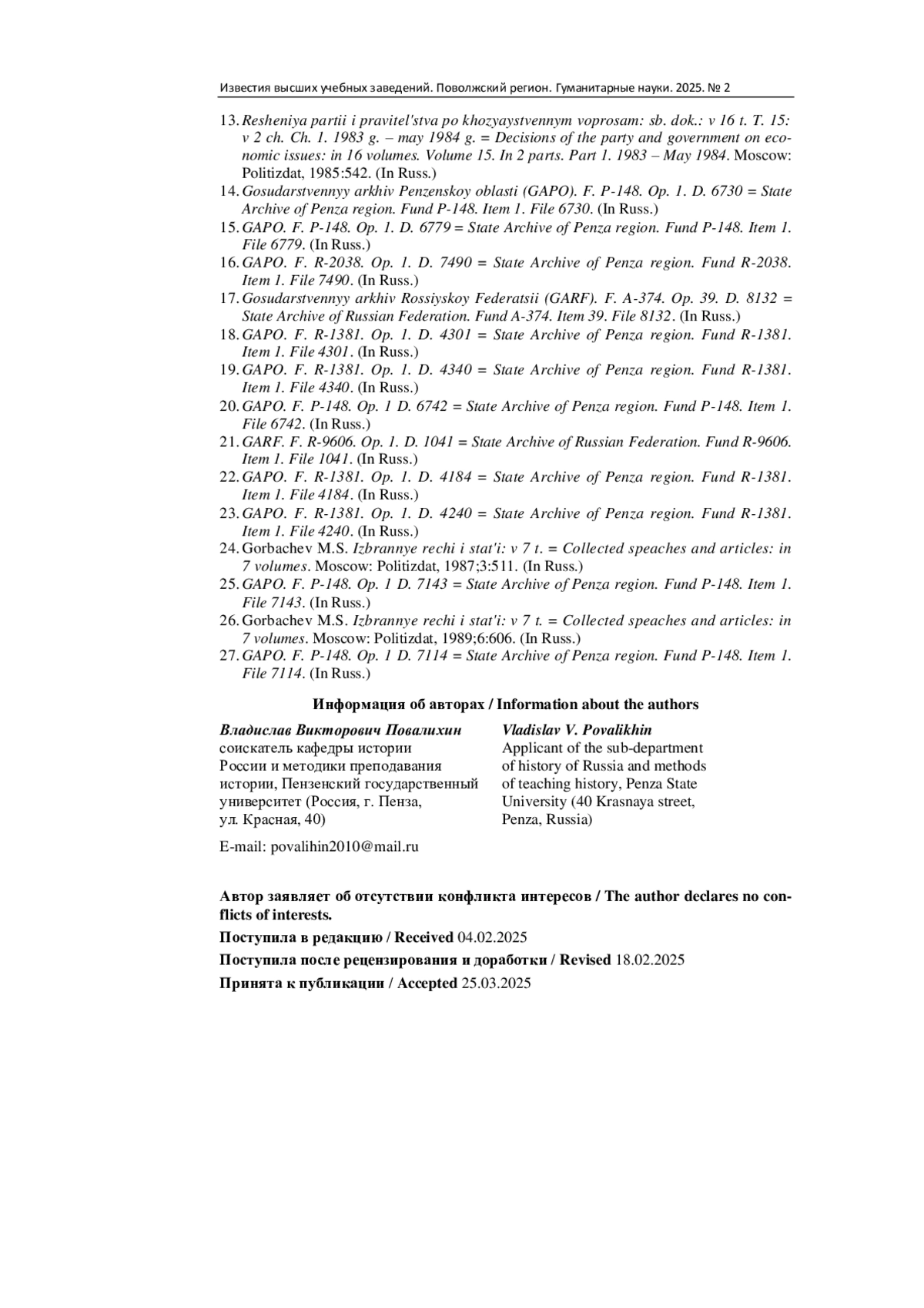 24. Горбачев М. С. Избранные речи и статьи: в 7 т. М.: Политиздат, 1987. Т. 3. 511 с.