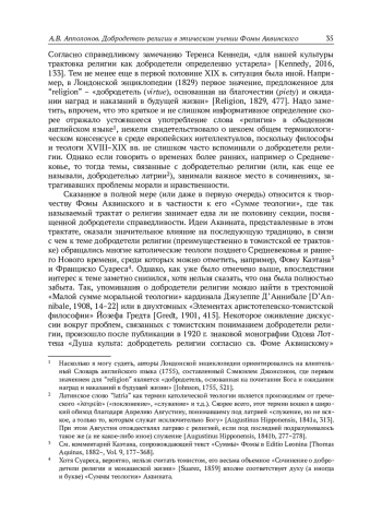 Согласно справедливому замечанию Теренса Кеннеди, «для нашей культуры трактовка религии как добродетели определенно устарела» [Kennedy, 2016, 133]. Тем не менее еще в первой половине XIX в. ситуация была иной. Например, в Лондонской энциклопедии (1829) первое значение, предложенное для “religion” – «добродетель (virtue), основанная на благочестии (piety) и ожидании наград и наказаний в будущей жизни» [Religion, 1829, 477]. Надо заметить, впрочем, что это краткое и не слишком информативное определение скорее отражало устоявшееся употребление слова «религия» в обыденном английском языке1, нежели свидетельствовало о некоем общем терминологическом консенсусе в среде европейских интеллектуалов, поскольку философы и теологи XVIII–XIX вв. не слишком часто вспоминали о добродетели религии. Однако если говорить о временах более ранних, например о Средневековье, то тогда темы, связанные с добродетелью религии (или, как еще ее называли, добродетелью латрии2), занимали важное место в сочинениях, затрагивавших проблемы морали и нравственности.