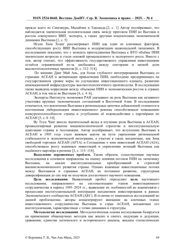 4. Данг Май Ань Пути и методы активизации привлечения прямых иностранных инвестиций в странах АСЕАН в условиях глобализации (на примере Социалистической Республики Вьетнам) Автореферат диссертации. 2016. URL: https://guu.ru/files/dissertations/2016/03/dang_m_a/autoreferat.pdf?ysclid=mh1rvq7jpp596982541 (дата обращения: 22.10.2025).