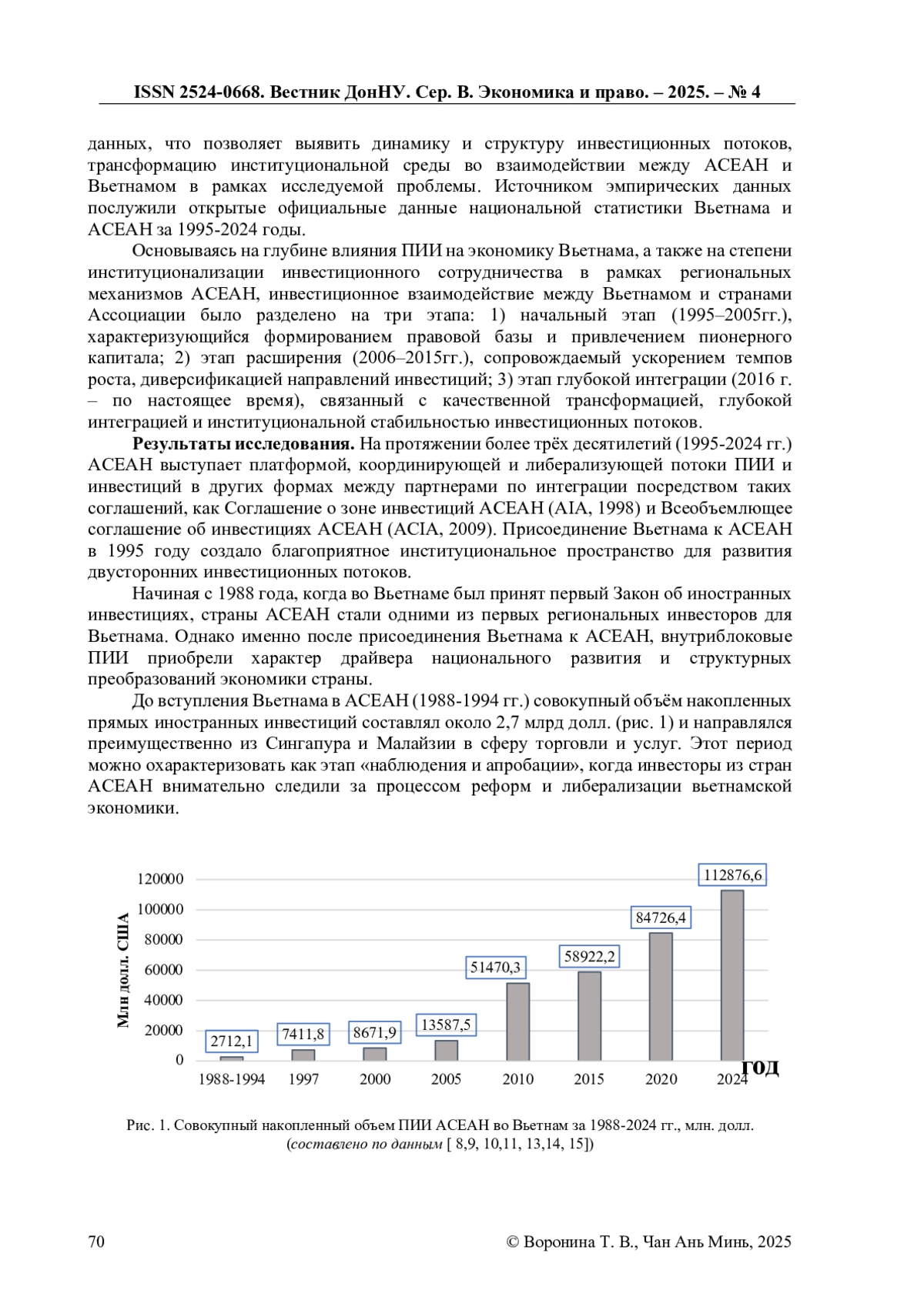 2. Аксёнова Е. М. Тенденции инвестиционного сотрудничества Вьетнама со странами региона и мира на современном этапе // Юго-Восточная Азия: актуальные проблемы развития. - 2017. - № 34. - С.188- 208. EDN: ZELRUH
