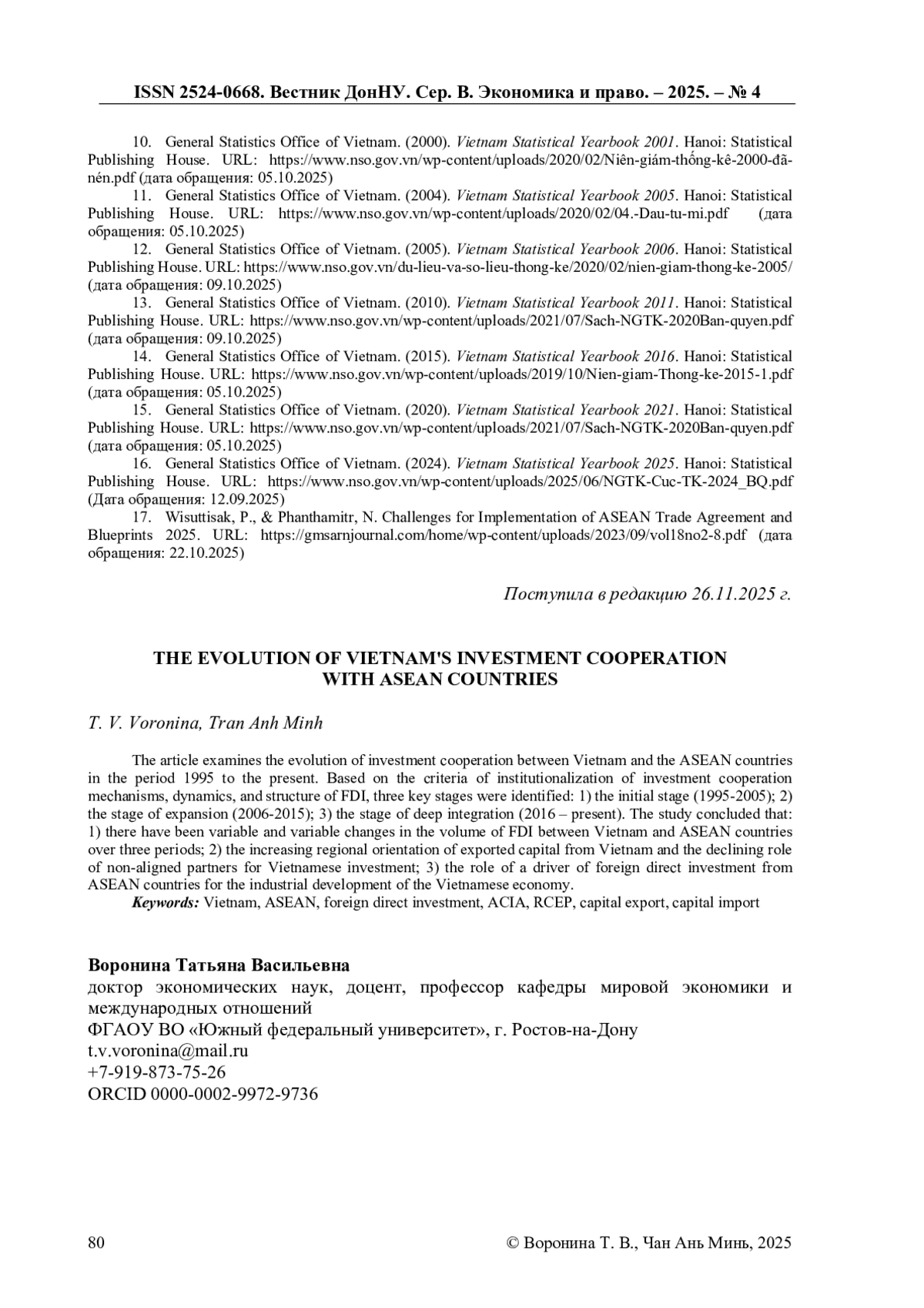 12. General Statistics Office of Vietnam. (2005). Vietnam Statistical Yearbook 2006. Hanoi: Statistical Publishing House. URL: https://www.nso.gov.vn/du-lieu-va-so-lieu-thong-ke/2020/02/nien-giam-thong-ke-2005/(дата обращения: 09.10.2025).