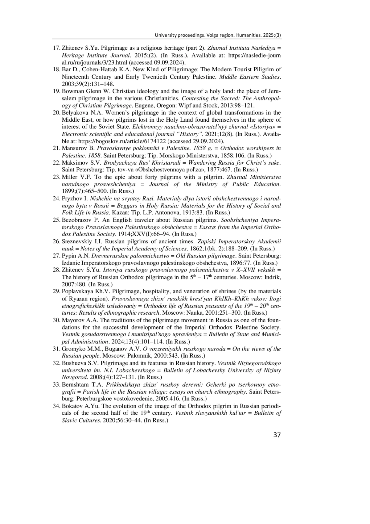 34. Бокатов А. Ю. Эволюция образа православного паломника в российской периодике второй половины XIX в. // Вестник славянских культур. 2020. Т. 56. С. 30-44. EDN: TQTTLE