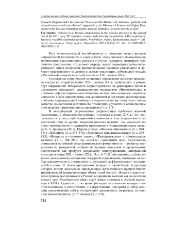 Рост геополитической нестабильности и появление новых вызовов национальной безопасности в современную эпоху вызывает необходимость мобилизации адаптационных ресурсов с учетом гендерной специфики публичного пространства, что, в свою очередь, задает параметры анализа исторического опыта сохранения преемственности традиций социального и духовно-нравственного служения в рамках реализации либеральной модели в Российской империи во второй половине XIX – начале ХХ в.