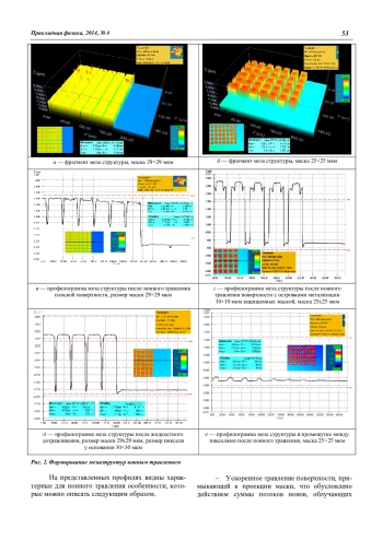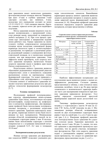 Экспериментально показано, что применение ионно-лучевого травления для изготовления матриц фоточувствительных элементов через маску фоторезиста позволяет формировать мезаэлементы в функциональных слоях гетероэпитаксиальных структур GaхAl1-хN/Al2O3, InхGa1-хAs/InP с шагом до 30 мкм [9—11]. Одновременно подтверждены возможности данного метода для создания матриц мега-пиксельного формата.