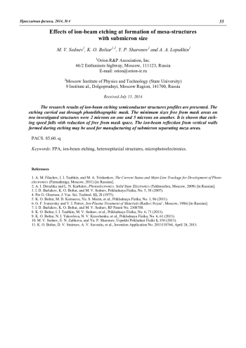 M. V. Sednev, K. O. Boltar, Y. P. Sharonov and A. A. Lopukhin Effects of ion-beam etching at formation of mesa-structures with the submicron sizes 51