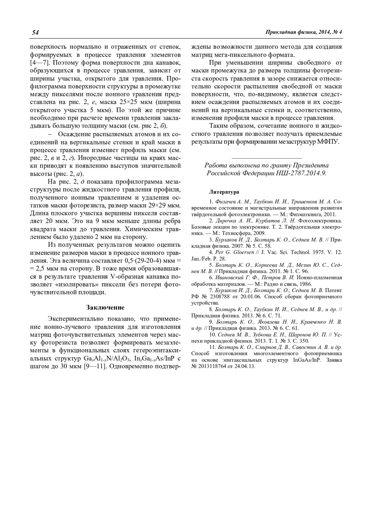 8. Болтарь К. О., Таубкин И. И., Седнев М. В., и др. // Прикладная физика. 2013. № 6. С. 71.