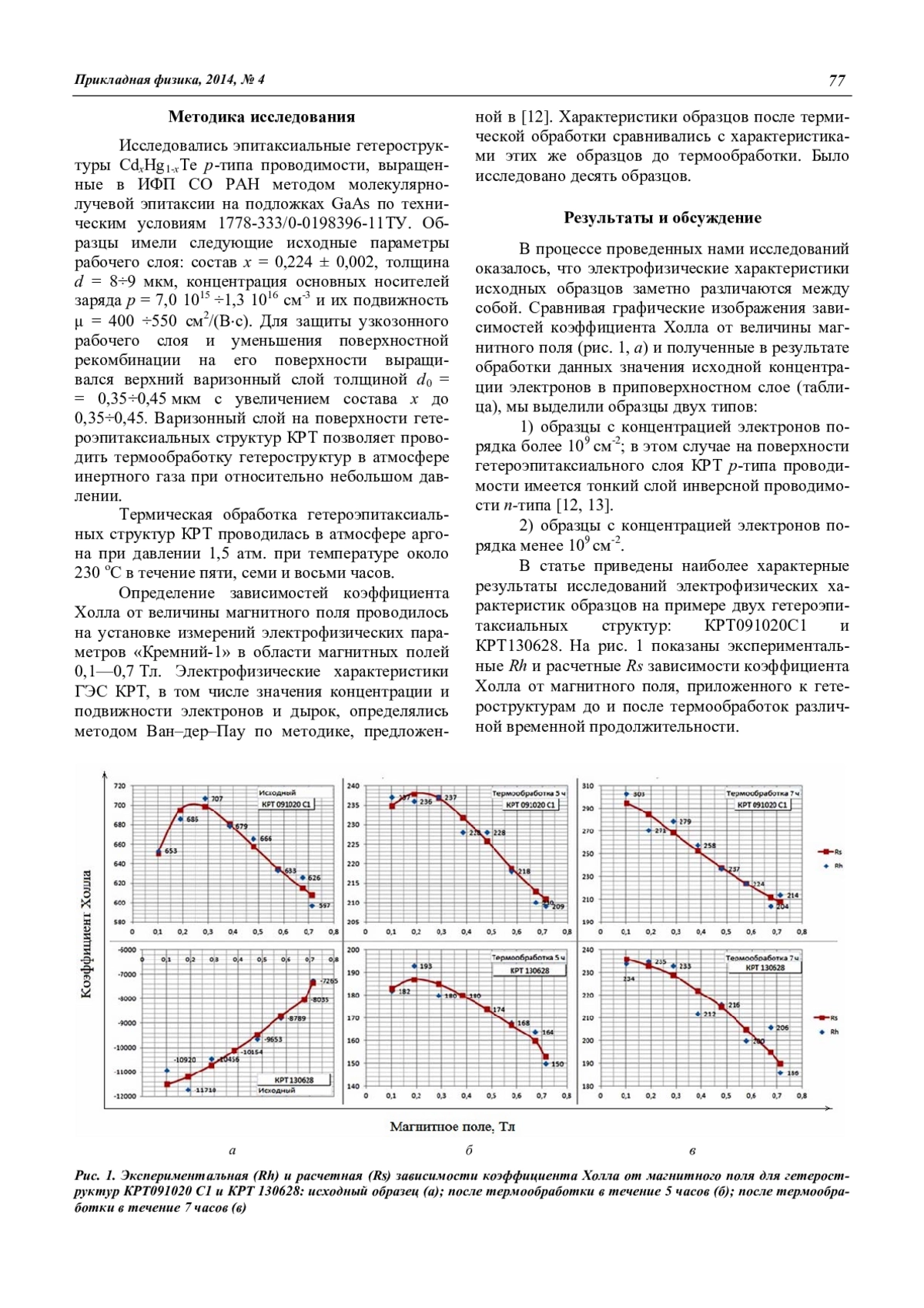 Кашуба А. С., Головин С. В., Болтарь К. О., Пермикина Е. В., Атрашков А. C. Исследование влияния термообработки на электрофизические характеристики эпитаксиальных слоев гетероструктур теллурида кадмия-ртути 76