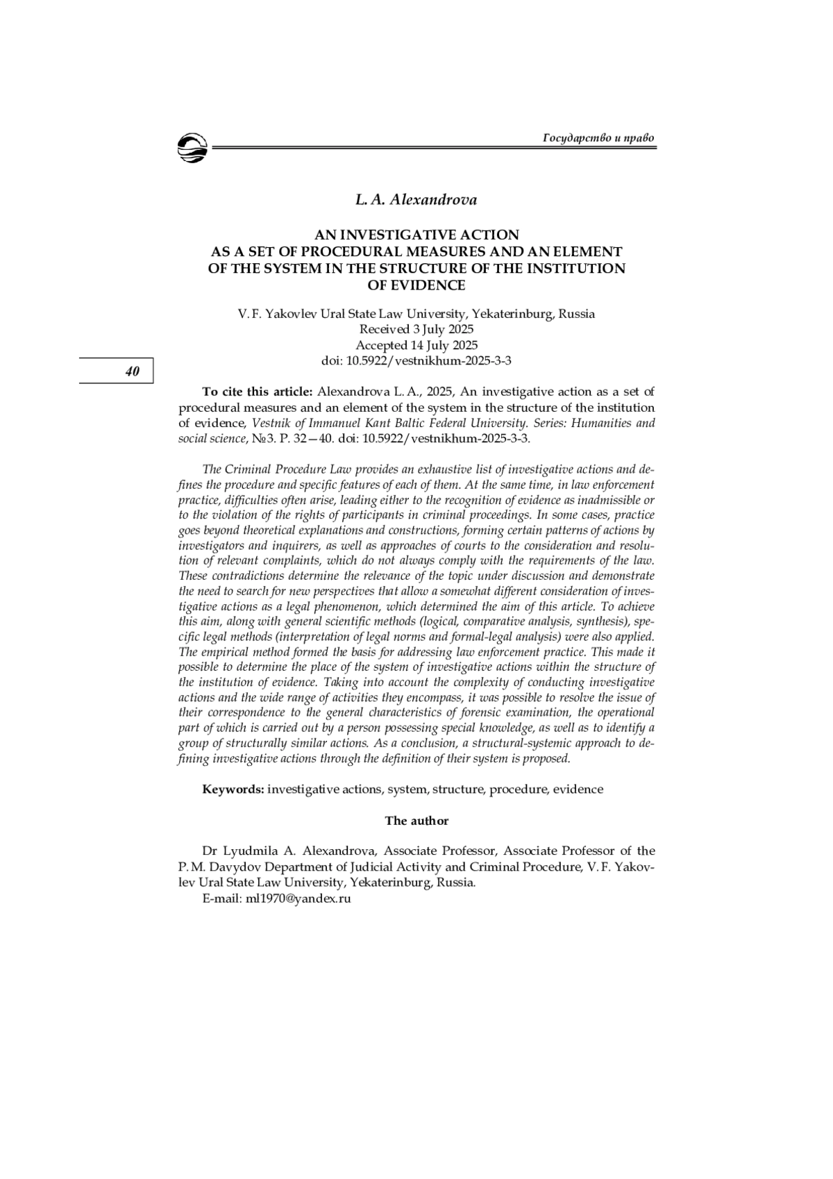20. Виноградов И. В., Кочаров Г. И., Селиванов Н. А. Экспертизы на предварительном следствии // Вестник университета им. О. Е. Кутафина (МГЮА). 2019. № 5. С. 197-207. EDN: OODNEN