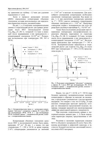 Полученные значения параметров комплексов позволяют производить расчет динамики релаксации вплоть до концентраций электронов ≥ 2·1014 см-3, в диапазоне температур от T = 20 оC до T = 120 оC.