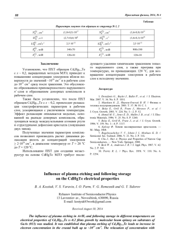 Костюк Б. А., Варавин В. С., Парм И. О., Ремесник В. Г., Сидоров Г. Ю. Влияние плазмохимического травления и последующего отжига на электрофизические свойства CdHgTe 85