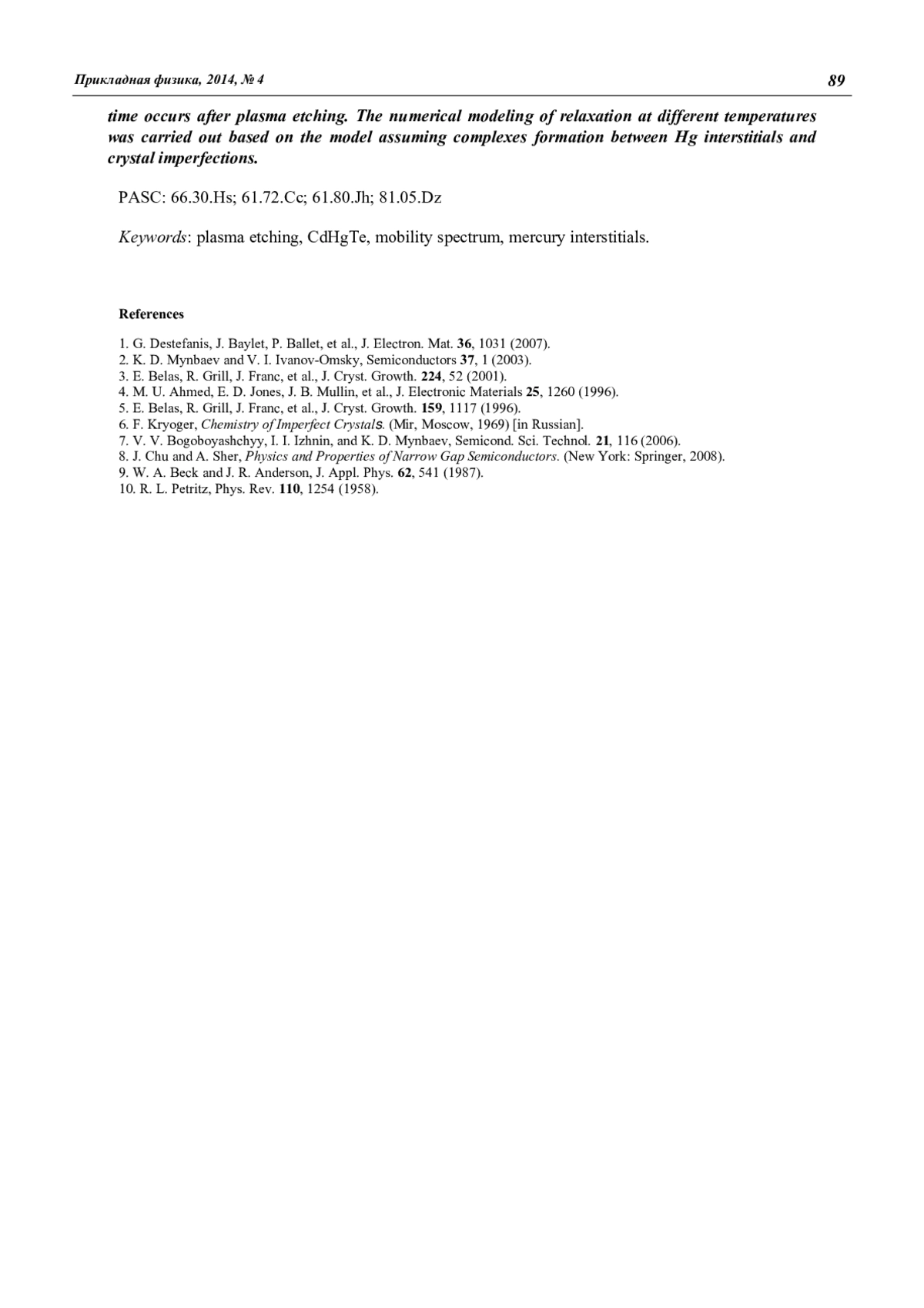 4. Ahmed M. U., Jones E. D., Mullin J. B., et al. // J. Electronic Materials. 1996. V. 25. No. 8. P. 1260.