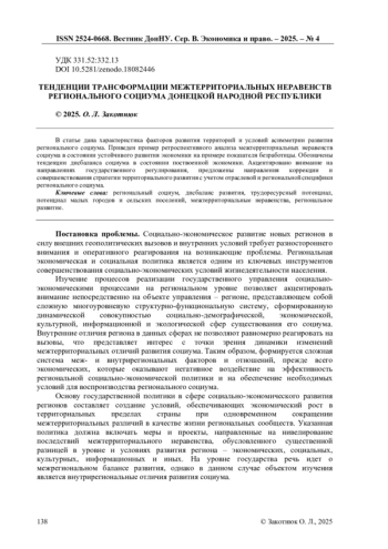 В статье представлены результаты комплексного экспертного мониторинга реального сектора экономики ДНР, проведённого в условиях ограниченности официальной статистической информации и высокой неопределённости внешней среды. На основе экспертного опроса предприятий выявлены ключевые тенденции развития промышленного сектора, проблемы и отношение к мерам государственной поддержки. Научная новизна исследования заключается в адаптации и применении методологии экспертного мониторинга для оценки состояния и перспектив развития реального сектора экономики в постконфликтном регионе. В ходе исследования выявлены специфические характеристики и проблемы, детерминирующие траекторию развития региона в контексте интеграционных процессов. Практическая значимость исследования заключается в возможности использования полученных результатов для разработки адресных мер государственной поддержки, направленных на обеспечение устойчивого экономического роста и эффективной интеграции ДНР в общероссийское экономическое пространство, с учётом специфических характеристик и проблем предприятий различных отраслей, форм собственности и масштабов деятельности.