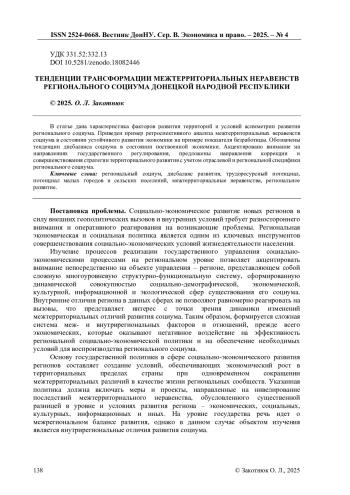Социально-экономическое развитие новых регионов в силу внешних геополитических вызовов и внутренних условий требует разностороннего внимания и оперативного реагирования на возникающие проблемы.