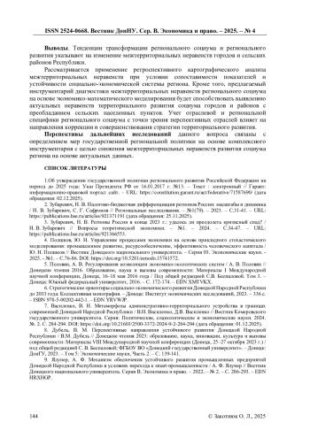 2. Зубаревич, Н. В. Налогово-бюджетная дифференциация регионов России: масштабы и динамика / Н. В. Зубаревич, С. Г. Сафронов // Региональные исследования. - №1(79). - 2023. - С.31-41. - URL: https://publications.hse.ru/articles/921371191 (дата обращения: 25.11.2025). EDN: TOLXAV
