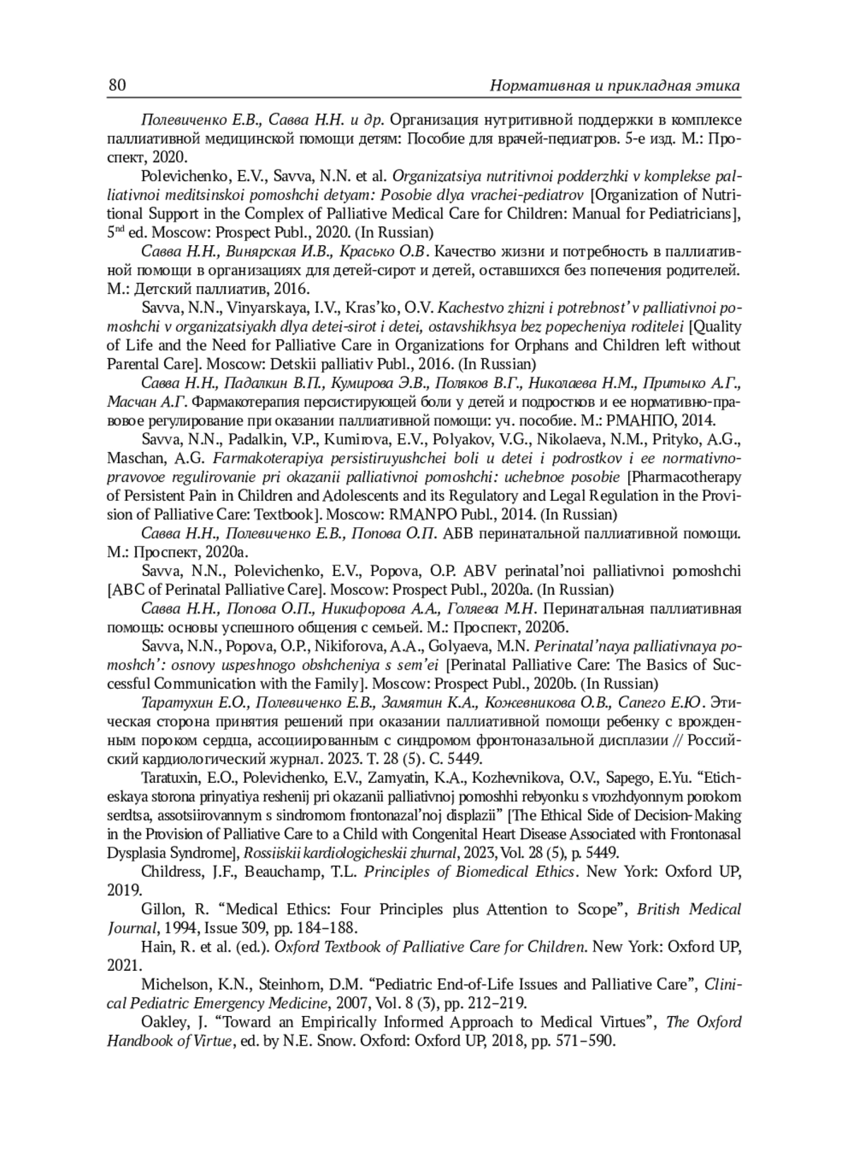 35. Савва Н.Н., Попова О.П., Никифорова А.А., Голяева М.Н. Перинатальная паллиативная помощь: основы успешного общения с семьей. М.: Проспект, 2020б.