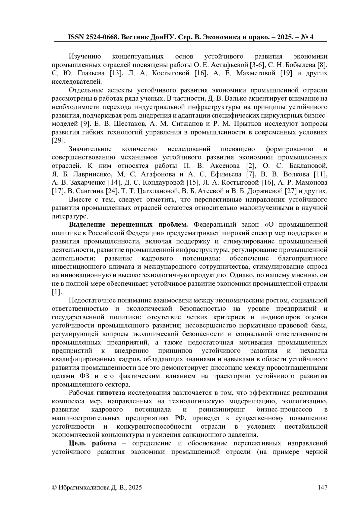 5. Астафьева, О. Е. Концептуальный подход к формированию механизма устойчивого развития экономики промышленных отраслей / О. Е. Астафьева // Вестник Московского гуманитарно-экономического института. - 2022. - № 3. - С. 29-32. DOI: 10.37691/2311-5351-2022-0-3-36-40 EDN: XPLPXP