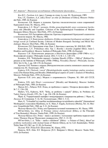 5. Апресян Р.Г.* Проблематика всеобщности в советской этике 1960-1970-х годов // Этич. мысль / Ethical Thought. 2020. Т. 20. № 1. С. 5-31.