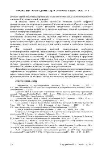 1. Цифровизация в агропромышленном комплексе России // Tadviser. - 2025. - URL: https://www.tadviser.ru/index.php/Статья:Цифровизация_в_агропромышленном_комплексе_России ( дата обращения: 12.11.2025).