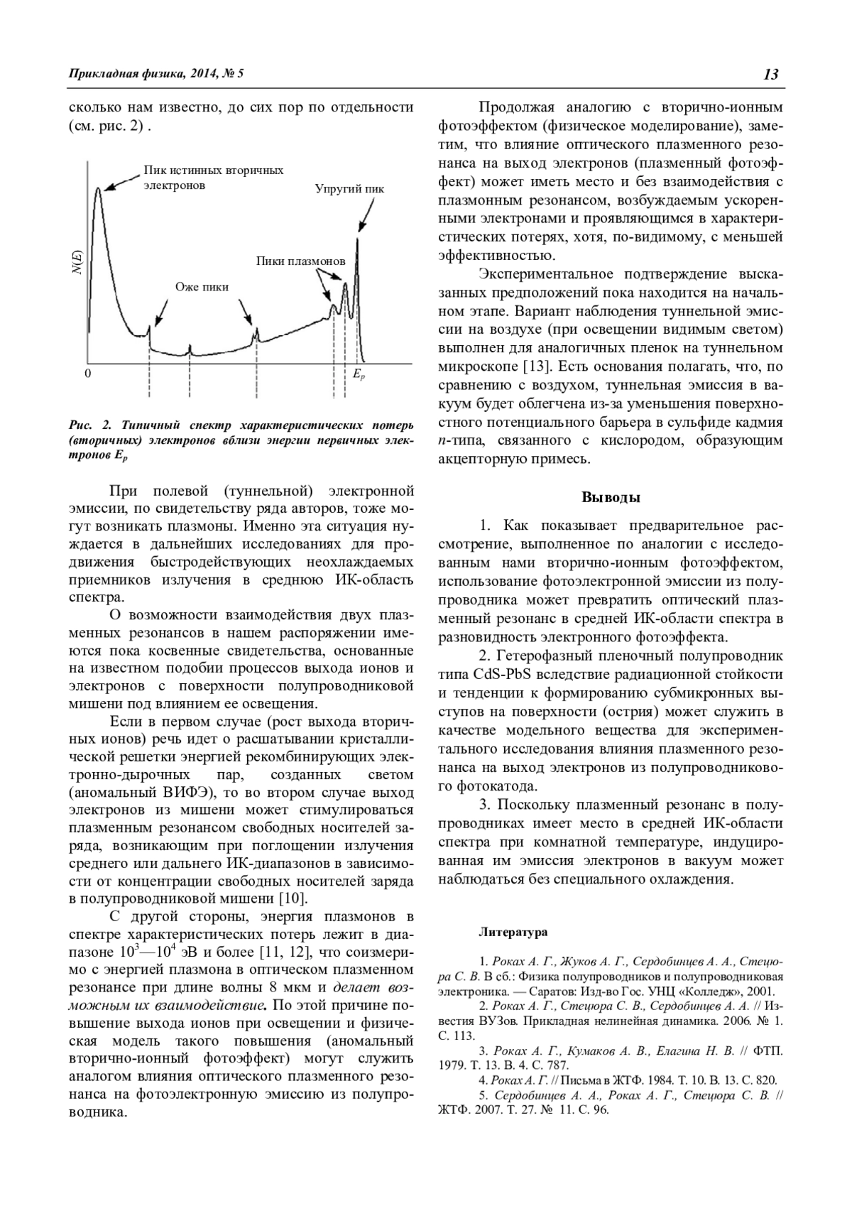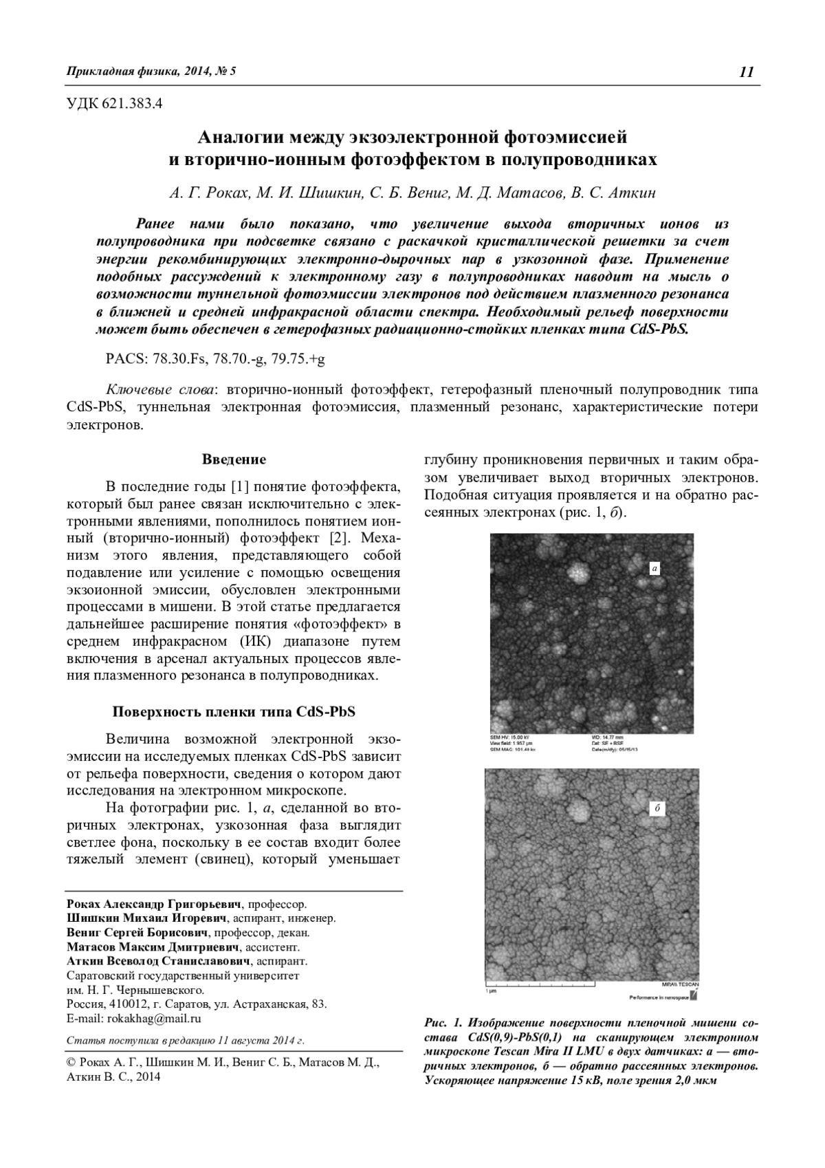 Роках А. Г., Шишкин М. И., Вениг С. Б., Матасов М. Д., Аткин В. С. Аналогии между экзоэлектронной фотоэмиссией и вторично-ионным фотоэффектом в полупроводниках 11