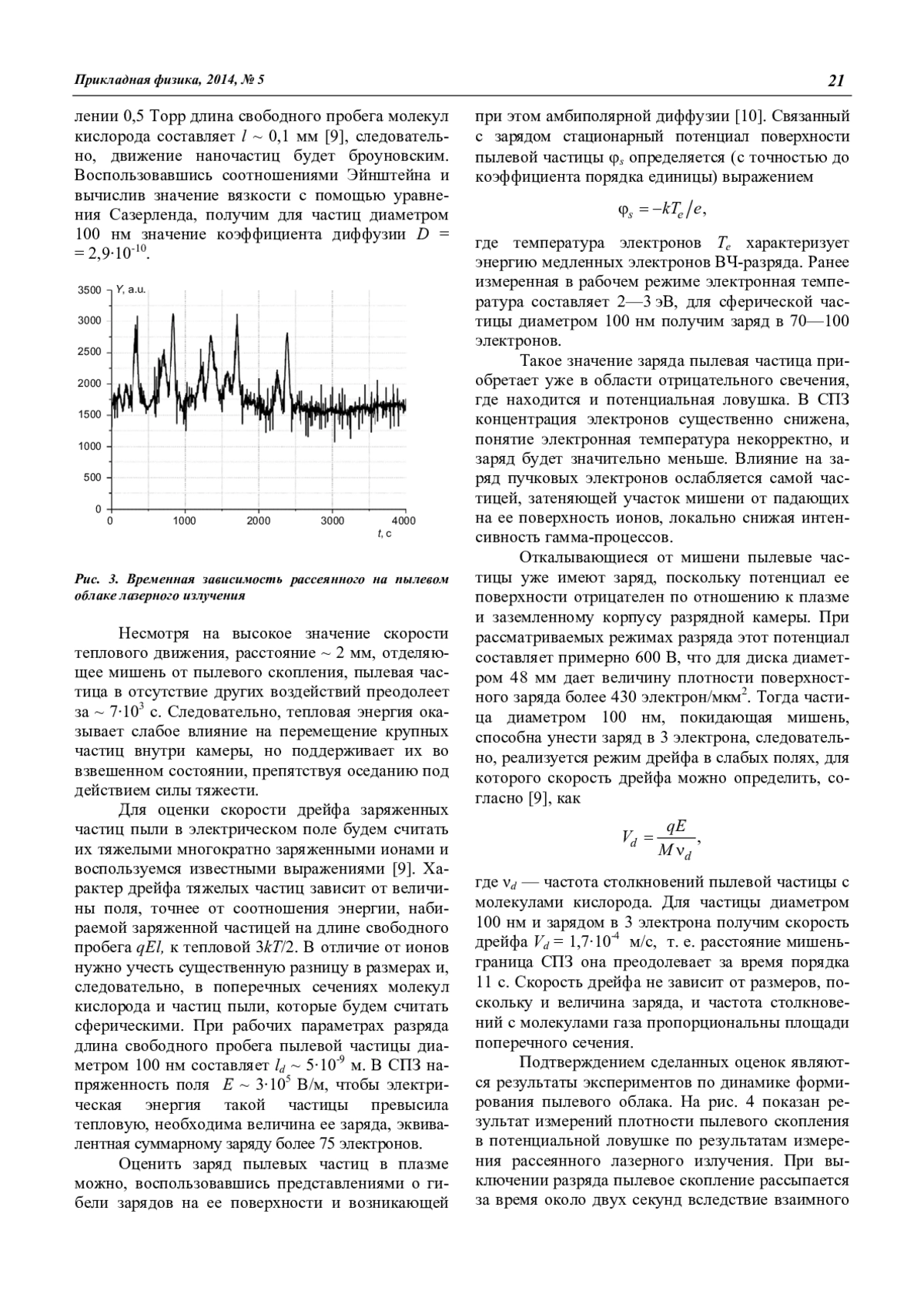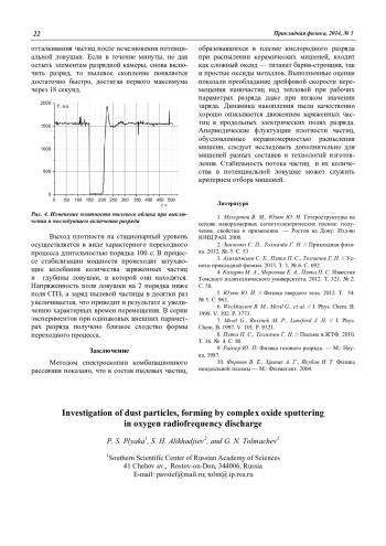 Пляка П. С., Алихаджиев С. Х., Толмачев Г. Н. Исследование пылевых частиц, образующихся при распылении сложного оксида в кислородном высокочастотном разряде 19