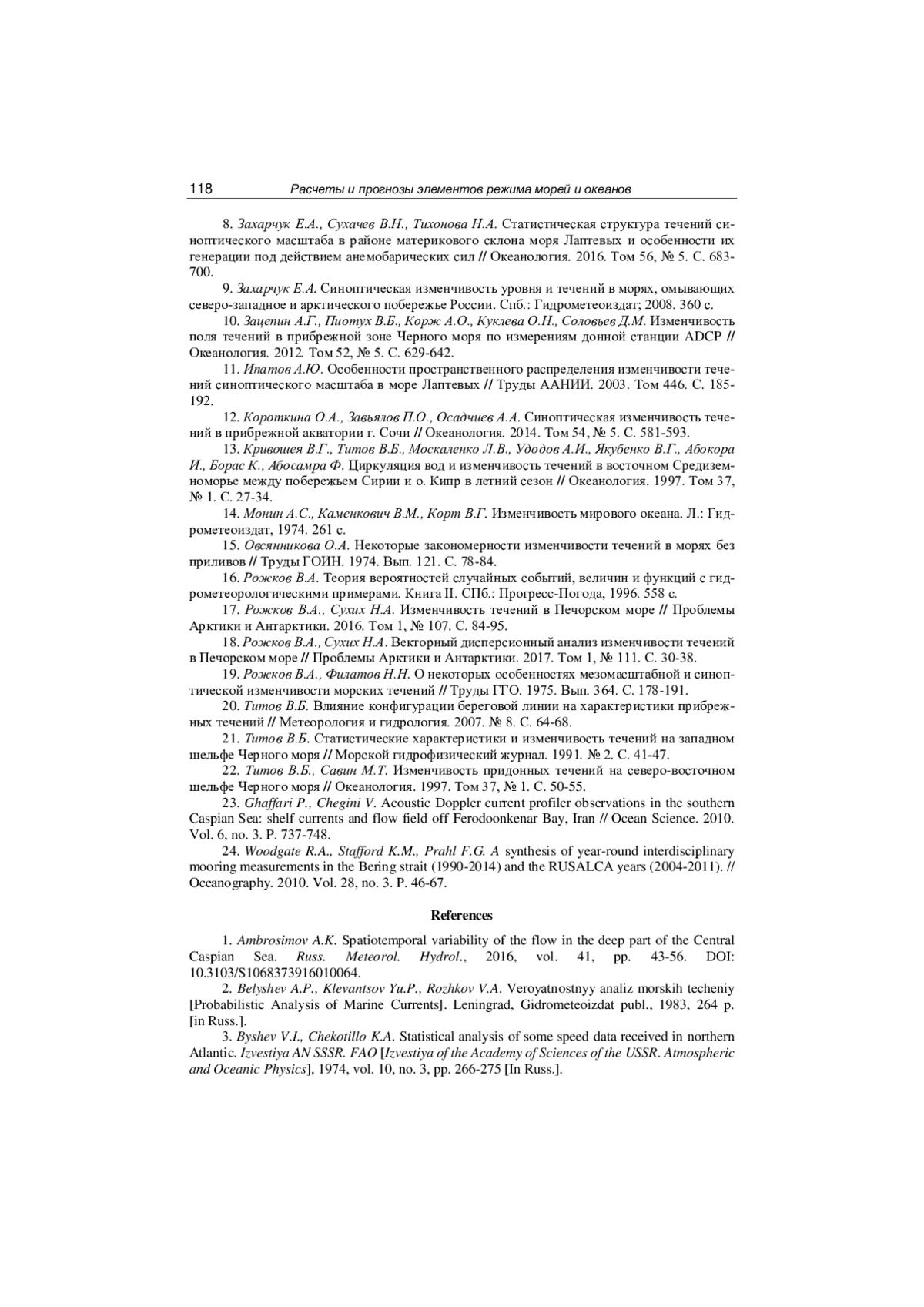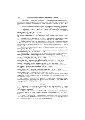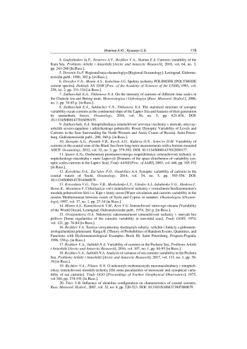15. Овсянникова О.А. Некоторые закономерности изменчивости течений в морях без приливов // Труды ГОИН. 1974. Вып. 121. С. 78-84.