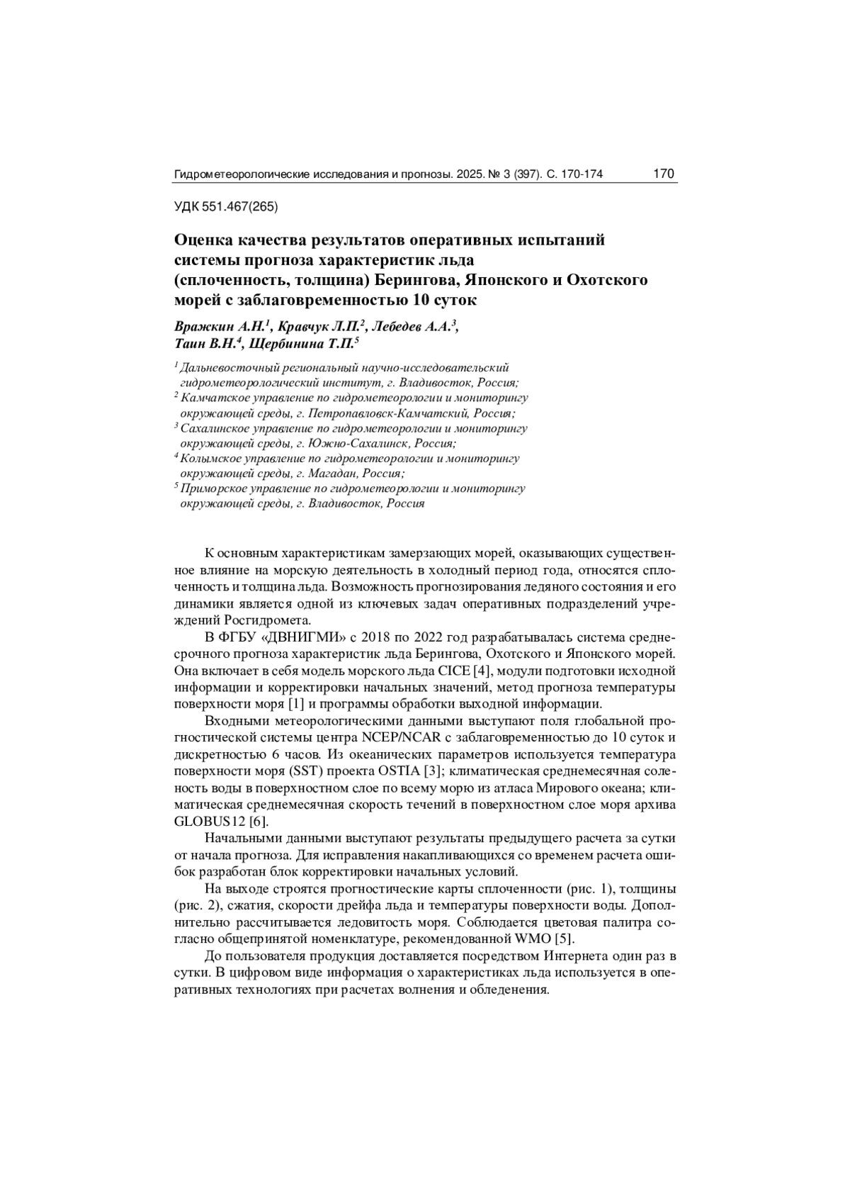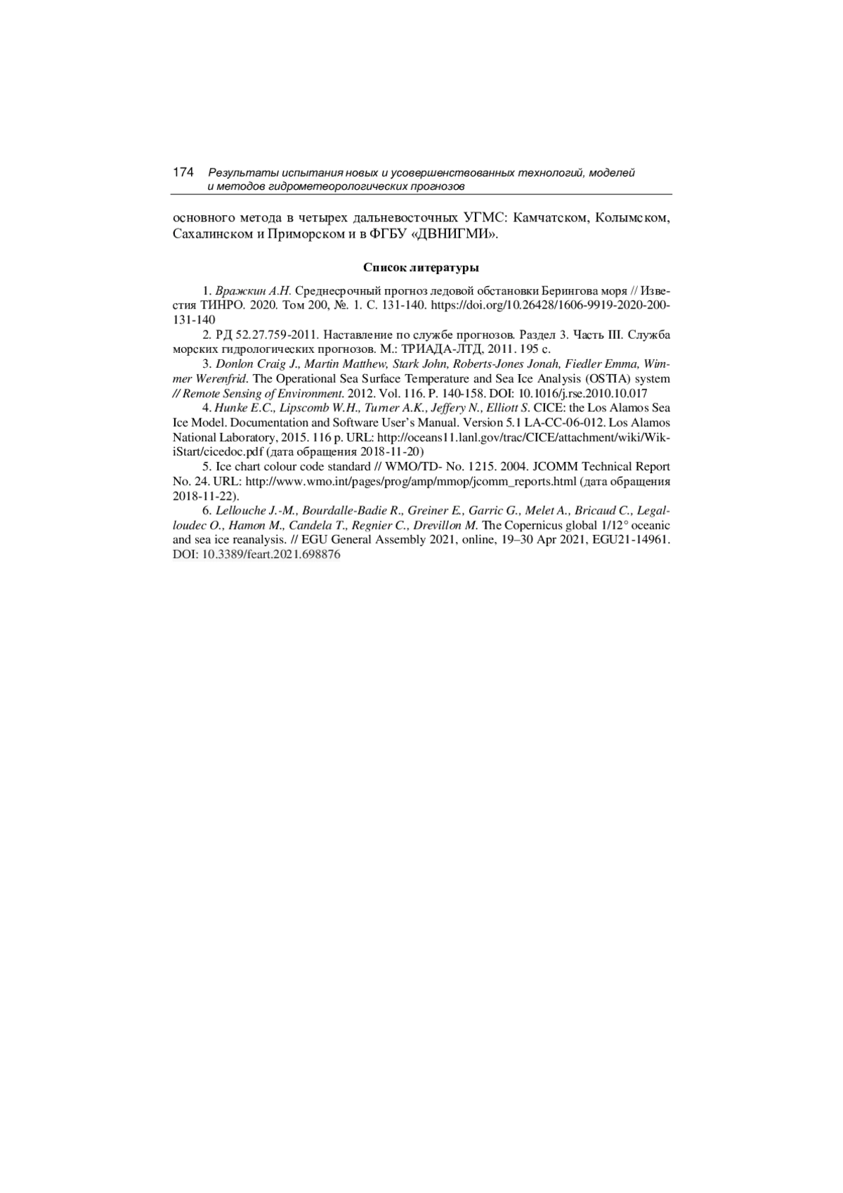 1. Вражкин А.Н. Среднесрочный прогноз ледовой обстановки Берингова моря // Известия ТИНРО. 2020. Том 200, №. 1. С. 131-140. DOI: 10.26428/1606-9919-2020-200-131-140 EDN: HNVHSL