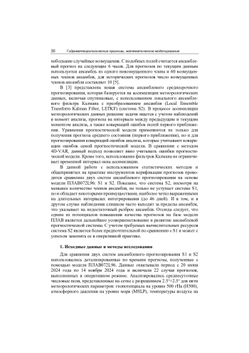 Существенный вклад в развитие и совершенствование метеорологического прогнозирования внесли ансамблевые прогностические системы. Прогнозирование с использованием ансамблей, инициированное в декабре 1992 года Национальным центром прогнозирования окружающей среды США и Европейским центром среднесрочных прогнозов погоды (ECMWF) в качестве дополнения к системе детерминистских среднесрочных прогнозов погоды, получило широкое распространение в мировой метеорологической практике [15, 18]. Важную роль в развитии данного подхода сыграли теоретические и экспериментальные работы Эпштейна [9], Флеминга [10, 11] и Лейта [14], посвященные проблемам неопределенности.