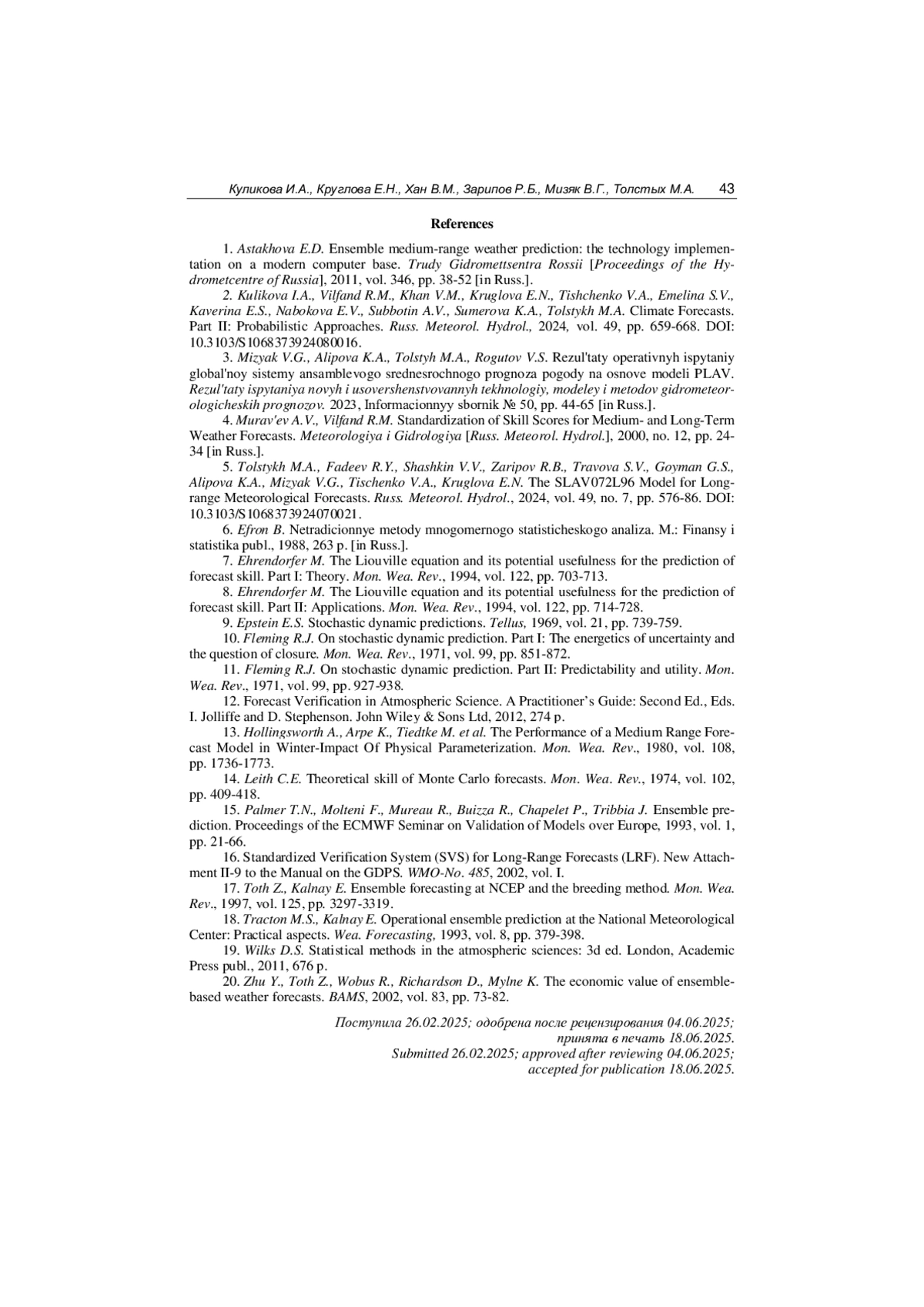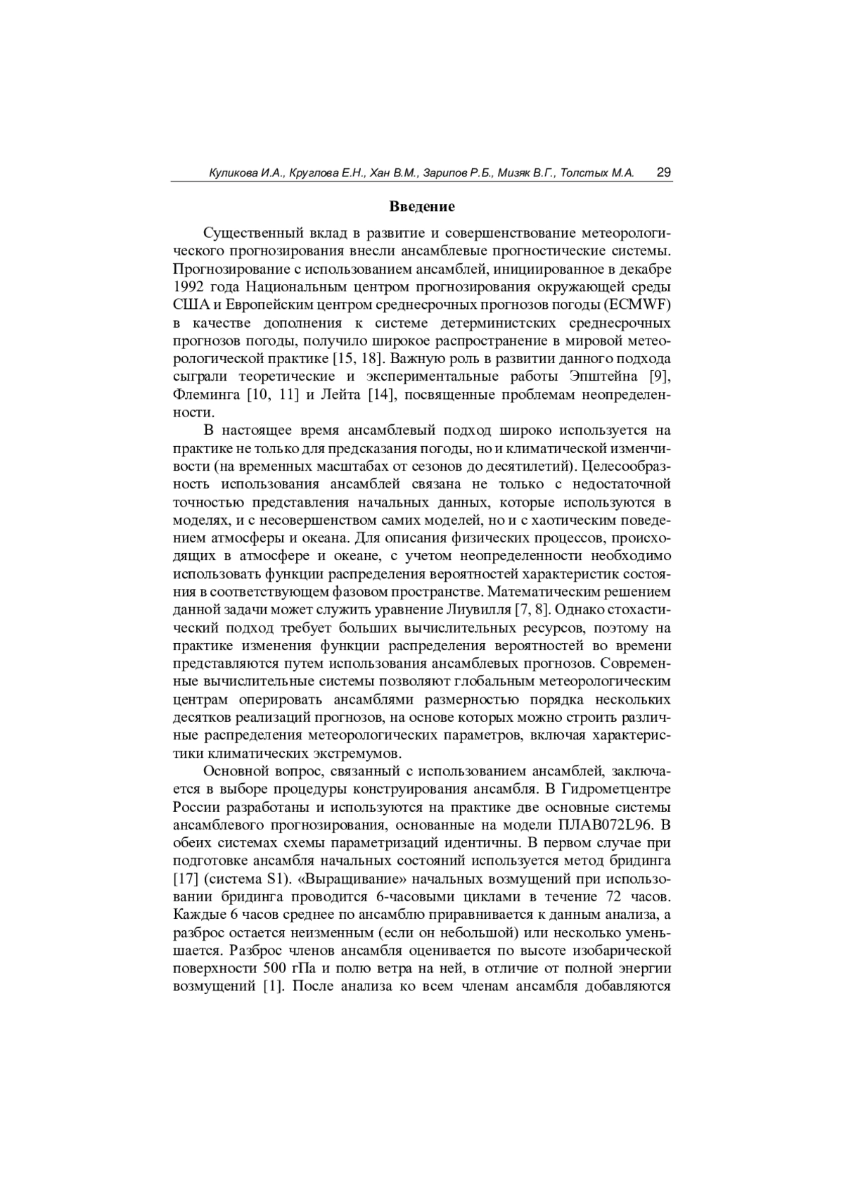 17. Toth Z., Kalnay E. Ensemble forecasting at NCEP and the breeding method // Mon. Wea. Rev. 1997. Vol. 125. P. 3297-3319.
