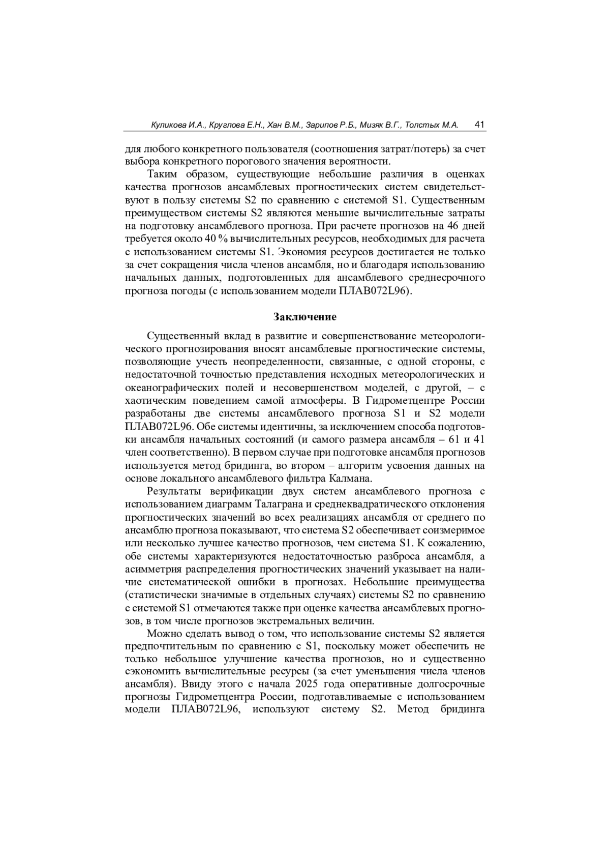3. Мизяк В.Г., Алипова К.А., Толстых М.А., Рогутов В.С. Результаты оперативных испытаний глобальной системы ансамблевого среднесрочного прогноза погоды на основе модели ПЛАВ // Результаты испытания новых и усовершенствованных технологий, моделей и методов гидрометеорологических прогнозов. 2023. Информационный сборник № 50. С. 44-65. EDN: HBNYSC