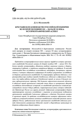 22. Прокофьева Н. П. Особенности животноводства в крестьянских хозяйствах Российской империи в 1900-1914 гг. (по материалам Симбирской губернии) // Право и образование. 2012. № 10. С. 177-180. EDN: PCTZLH